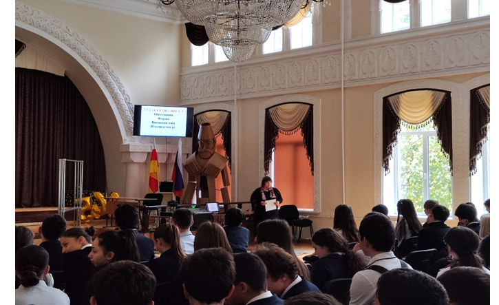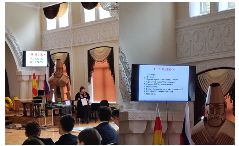16.10.2025 года в актовом зале гимназии № 5 заместитель директора по УВР Подколзина Н.Н. провела линейку для учащихся 9 классов.