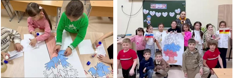 Для детей была организована познавательно‑развлекательная программа «Мы разные — и в этом наша сила!». Они раскрашивали яркие эскизы костюмов представителей разных национальностей, проживающих в нашей большой стране.