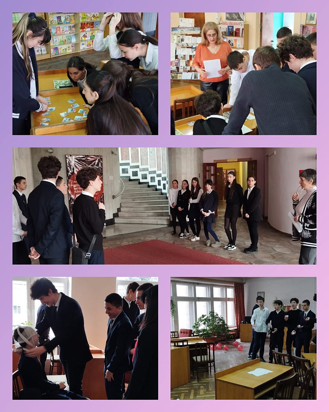 24 и 25 февраля ученики 8 «Д», 8 «Е» и 9 «А» классов гимназии № 5 вместе с учителями Доевой Э.В. и Шалденко В.А.в прошли настоящий боевой путь в стенах детской библиотеки им Д.Мамсурова. Квест, приуроченный к 23 Февраля, проверил ребят на смекалку, ловкость, сплочённость и даже артистизм!