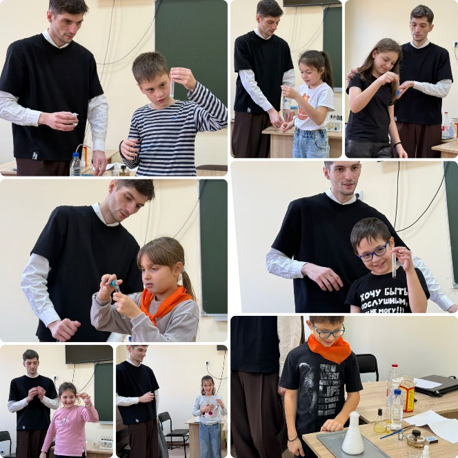 В заключительный день лагеря «Успех» юные исследователи 3 и 4 классов погрузились в захватывающий мир химии, который открыл перед ними безграничные возможности для творчества и экспериментов. Под руководством учителя химии ребята стали настоящими алхимиками, исследуя удивительные свойства веществ и их взаимодействия.